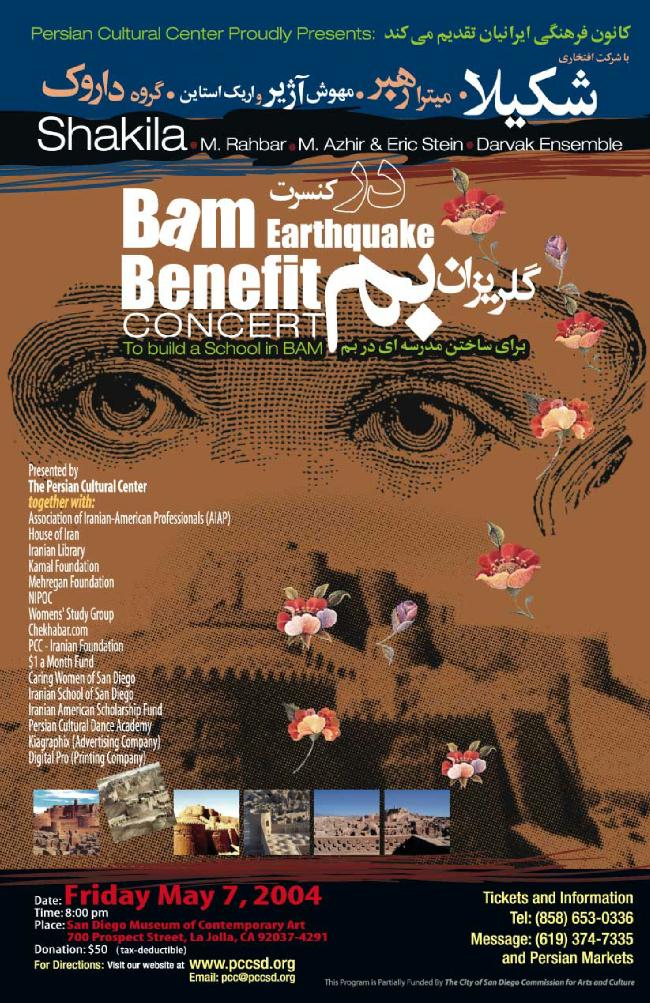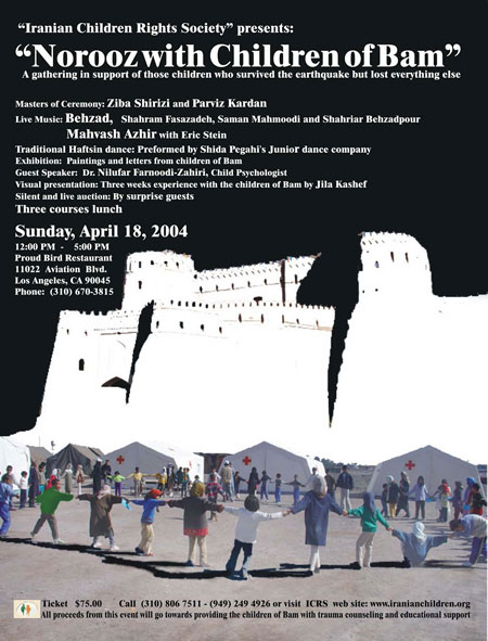 Mahvash Azhir & Eric Stein will be performing at the fundrasing event for the children of Bam in Los Angeles on Sunday April 18, 2004.
