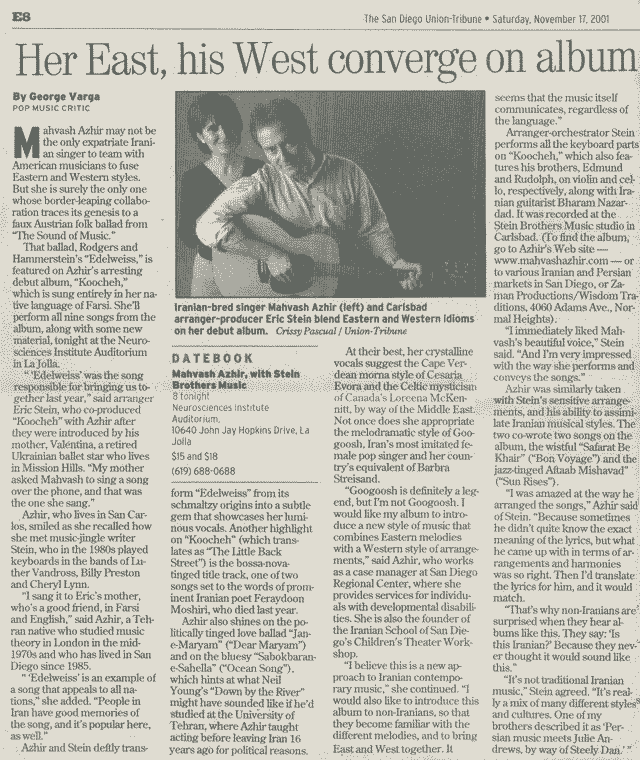 The San Diego Union-Tribune Artical on Mahvash
